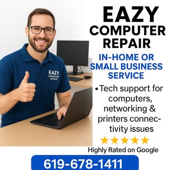 Eazy Computer Repair ofrece una reparación de ordenadores rápida y confiable en Chula Vista, CA; su equipo de expertos soluciona problemas de hardware y software en tiempo récord, con un servicio al cliente amable y precios transparentes, y la ubicación en 1985 Paseo Cultura facilita el acceso; puedes contactarlos al (619) 678‑1411 o visitar su web https://eazycomputerrepair.com/ para agendar una cita, y me merecen una calificación de 5 sobre 5 por su eficiencia y profesionalismo.
